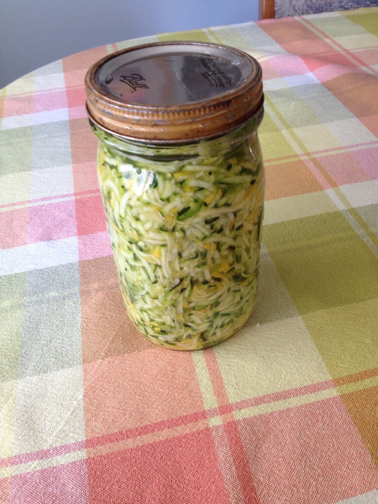 Shredded yellow and zucchini squash (I used about 2 of each for 2 quarts, but it all depends on how big they are and how much you want to make.)