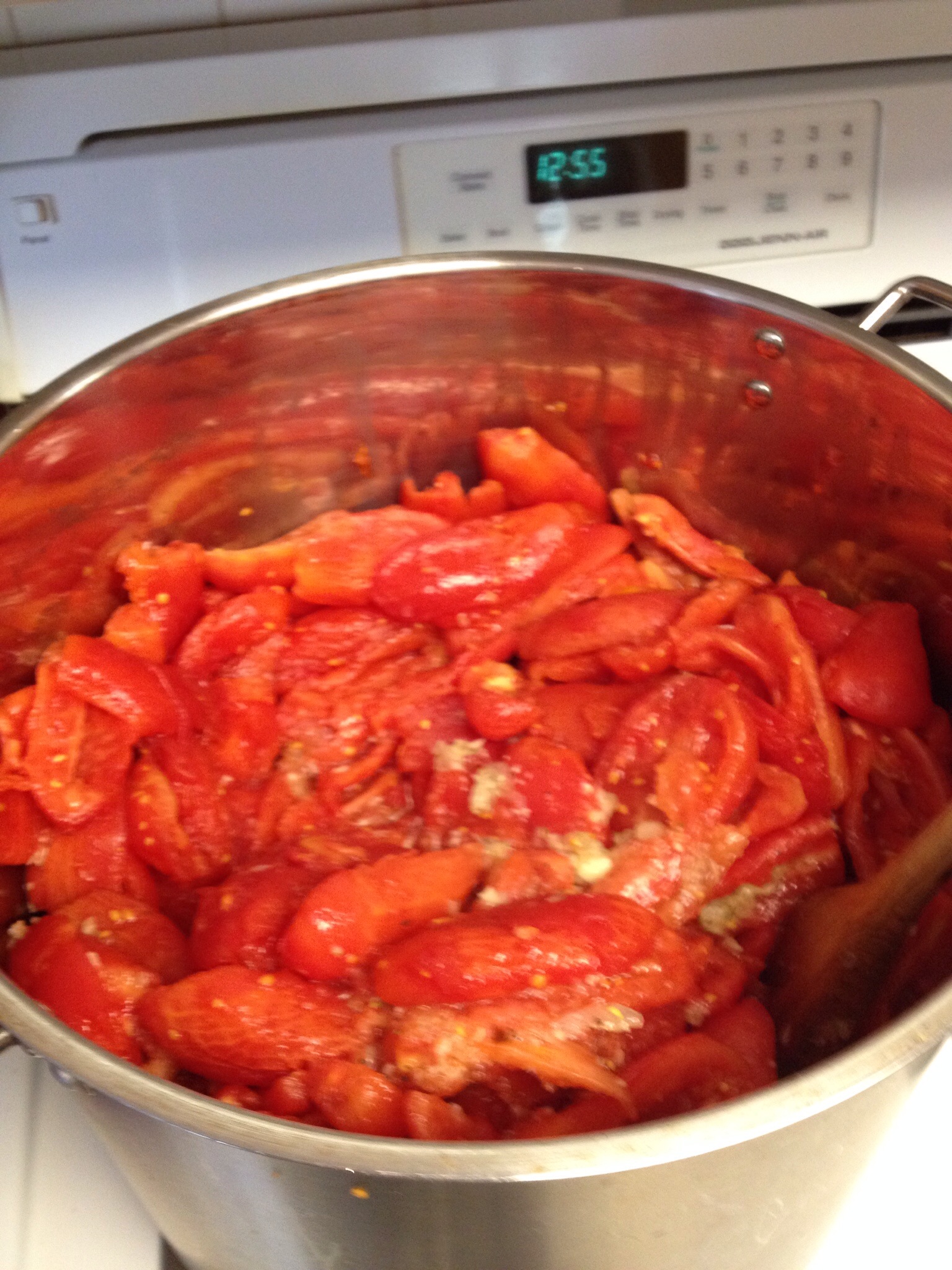 Peeled and seeded tomatoes ready to cook down into tomato sauce