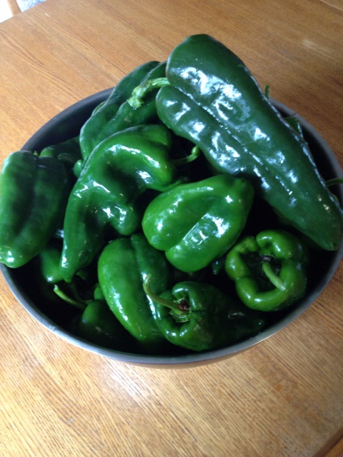 That is a great big bowl, too. The chile on top is 9″ long! We have never gotten this many or that big of chiles before. Goes to show what a warm summer we had.