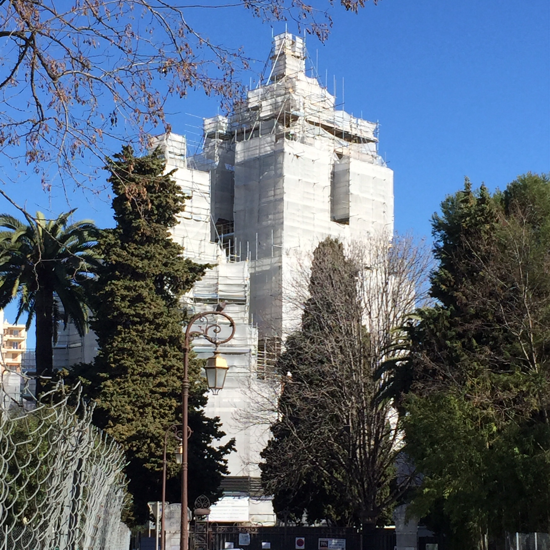 Thursday morning I was up earlier and ready to go for a walk by 9:30. I decided to go see the Russian Orthodox Church, Cathédrale Russe. It was in the opposite direction of the main part of town and, therefore, in an area I hadn’t explored. I managed to find it easily but was surprised to find it was totally covered. The gate was also closed. There might have been another one somewhere else, but I didn’t think of looking until later.