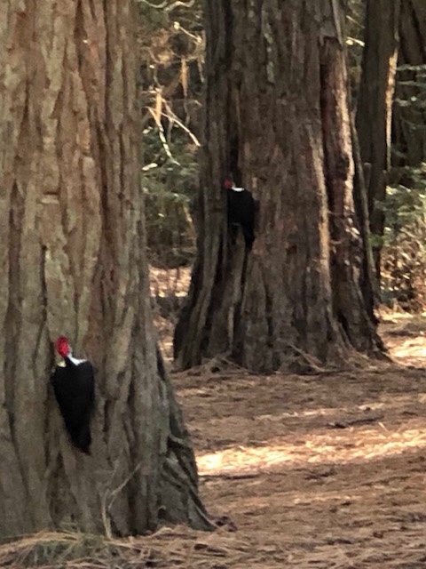 The morning dawned bright and clear. I had my coffee then walked around a bit to get oriented. At one point I heard a noise and looked and saw a Pileated Woodpecker a few yards away at the base of a tree. Then I saw another one on the tree next to it. They looked huge! We have them in Seattle and last summer I saw three on the utility pole outside the house. That was the first time I had ever seen them before. These didn’t seem to mind that I was just a few feet away they were so intent on their feeding.