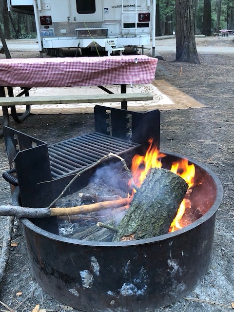 I found my spot and got set up. There were quite a few open campsites around me and no one next to me on either side. The campground is surrounded by towering sequoias. It was still light out but there were so many trees that the campsite was in the shade and was very cool. I went inside, warmed up leftover Chile rellenos, listened to my book on tape, watched another episode of Altered Carbon and went to be early.
