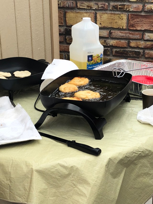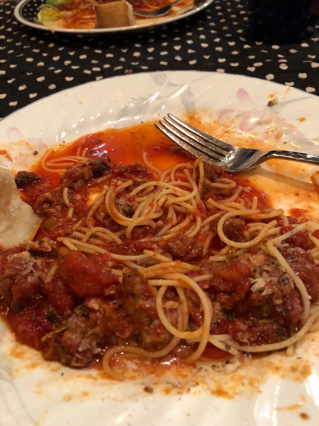 And while Bill was working on the electrical issues, I was making spaghetti sauce for dinner. I browned all the meat, veggies, then put it all with the crushed tomatoes and other stuff into the Instant Pot. Since I didn’t have power inside, Frank set up a power cord plugged into Bill’s place and we put the pot on the table outside.