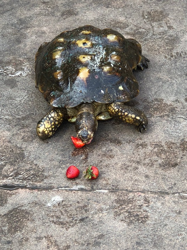 By noon the place was packed and a two man band was playing loudly right next to us. There was a turtle that wandered through a couple of times and one of the waiters gave it some strawberries. It was funny to see it in the middle of the bar eating them with everyone taking pictures.