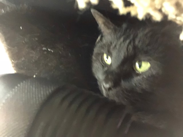 Another Misty misadventure: The camper has a slide out where the dinette is. There is a small opening under one end where there is obviously a space. As I said before, if there is an opening or cubby anywhere, Misty wants in. She crawled into this place, which I can’t see into because it is just a few inches from the back wall, and decided to stay. I managed to get a photo so I could kind of see if there was anything she could get into trouble with but it just looks like a spot made for her. It would probably squish her if I brought the slide in, but I always put her in the front of the truck before bringing the slide in.