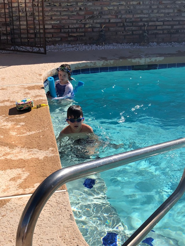 Shortly after I finished breakfast, we all gathered around the pool. It was warm and sunny and the kids were having fun in the pool. Frank and Trish came over to visit and swim. Carl, Judy, Sara and the kids decided to go to the historic prison. I decided I needed to save something for my next visit so stayed by the pool.