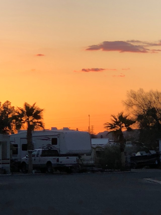 By then it was happy hour so I headed over to Mar and Gar’s. Garry was sitting in his little car trailer out of the wind so I joined him on their new rocking chair. Mar came out with some cheese and crackers and we talked and listened to music. Was getting fairly cold so we moved into the RV.
