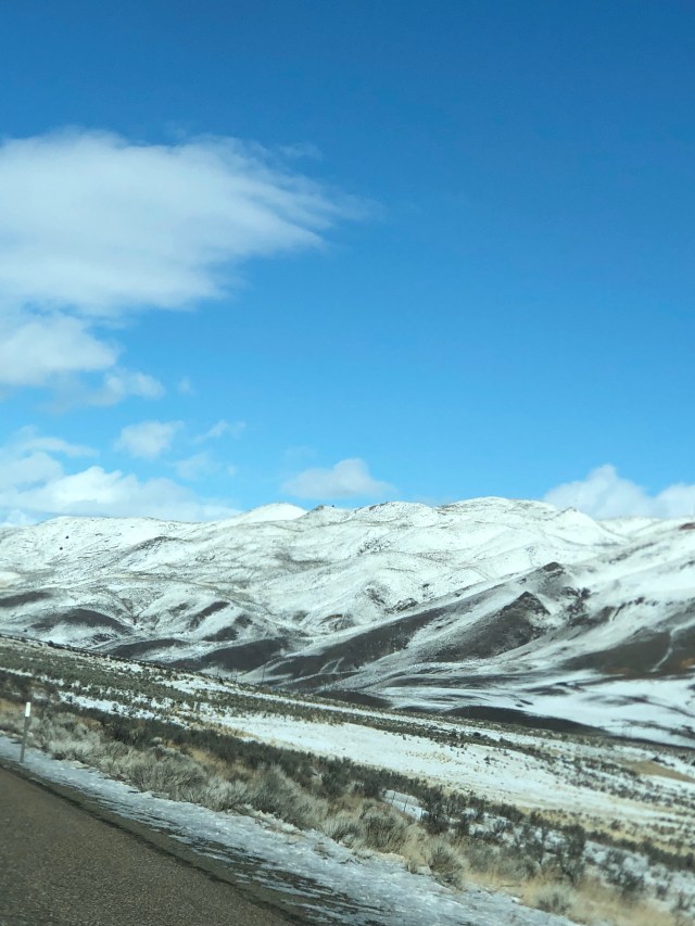 There have been intermittent snow/ice pellets falling as I have been sitting here and there are some pretty good wind gusts every once in awhile. But I think the really bad wind and weather is behind me now. I am sure I will hit rain heading into Western Oregon and Washington, though. Maybe I should knock on wood!