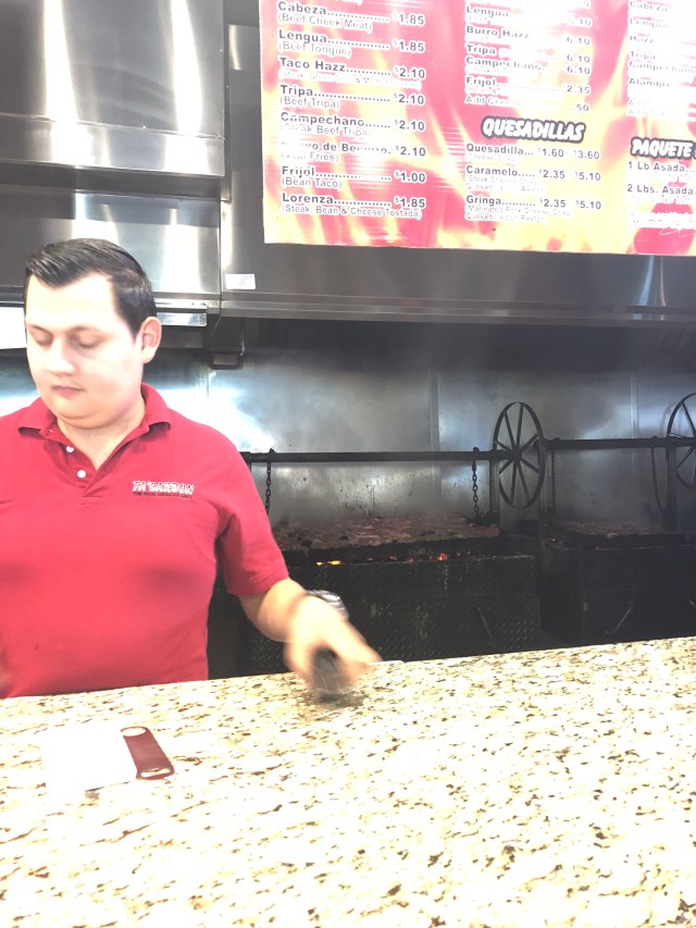 There is an awesome Mexican place to get tacos in Glendale that we discovered a few years ago. We never made it last year but had decided we would go straight there from the game since it was about 30 miles from the hotel. It is called Ta’carbon and has a big charcoal fired grill where they make carne asada and other grilled meats. Then they chop them up and make tacos, burritos, quesadillas, and other goodies. It totally reminds me of the street food in Mexico. Plus it has a big salsa bar with various sauces, limes, chopped onions, cabbage, and lots of other stuff.