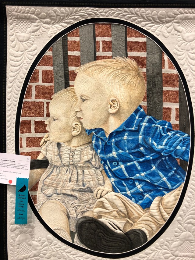 There are also lots of vendors selling fabric and everything else you can think of that can be used for sewing or have anything to do with sewing. I didn’t buy a thing! I wandered up and down the aisles then came to the display quilts. There were some really amazing ones. The quilting on most really made the design stand out. However, there were two quilt ‘paintings’ that were pretty remarkable.