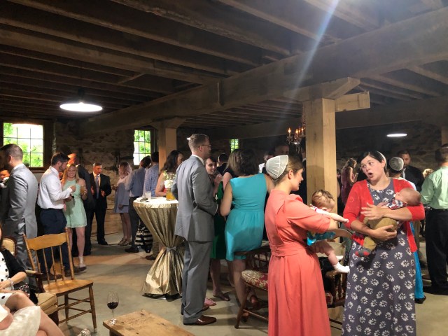 Pretty pictures, looks like it was a nice wedding. Nice of you to be there for it. I am interested in the women with the long dresses and snoods in their hair. Are they Amish?