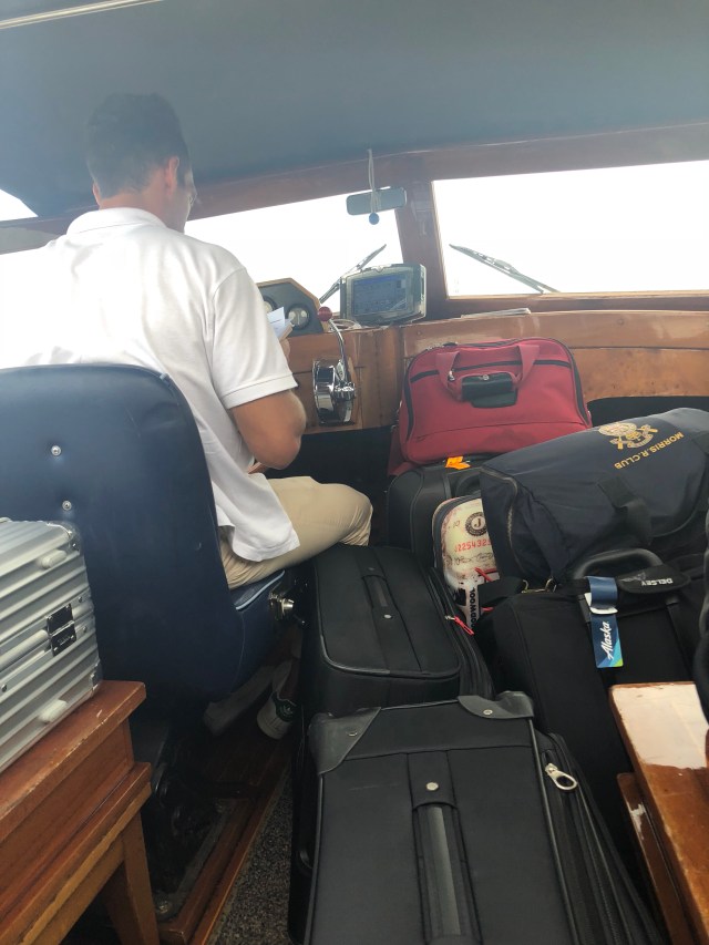 My flight to Venice was late by about half an hour. I was to meet up with another couple, Rob and Kristy (who were part of the group going on the cruise) at the airport to take a water taxi to the hotel. Their flight was also late. Then we had to wait for another 6 people to show up before heading to the boat. There were moving sidewalks all the way to the boats but the guy they gave the voucher to was too busy kissing his girlfriend to actually walk so it took us a lot longer than it should.