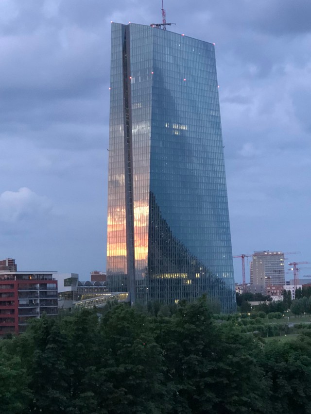 The plaza with a water feature. Later in the evening there were kids playing in it.