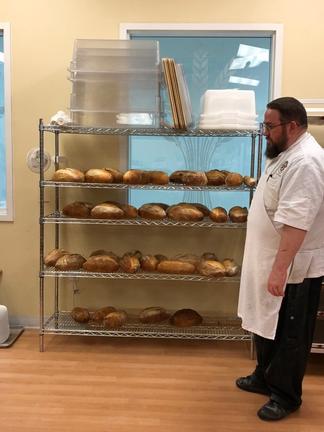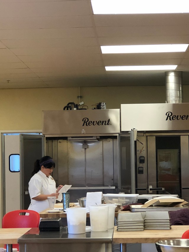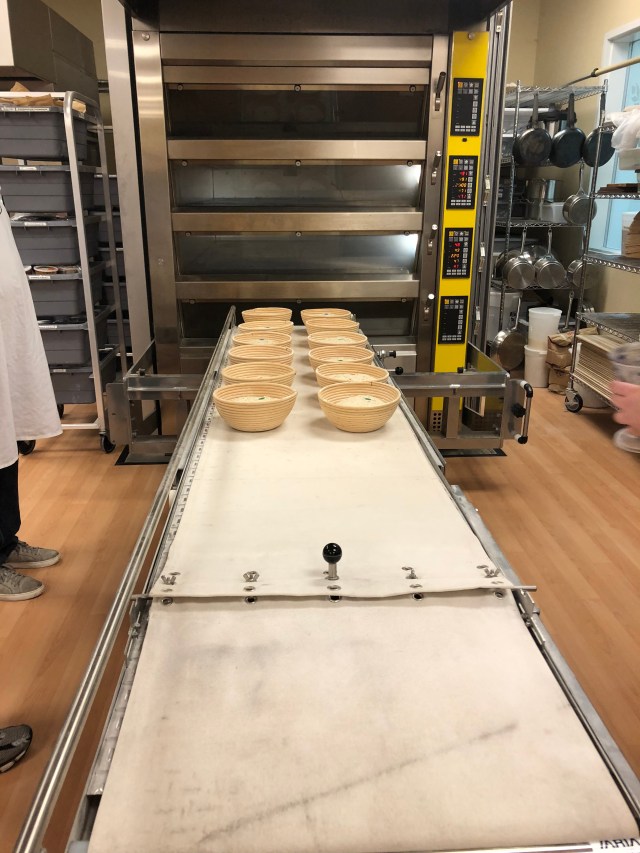 I also didn’t take any pictures of us loading the batards onto the conveyor belt and putting them into the deck ovens. There were probably close to 50 batards from the dough they had premixed that were ready to go into the oven. Everyone took turns loading them and then slashing them.