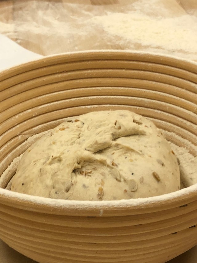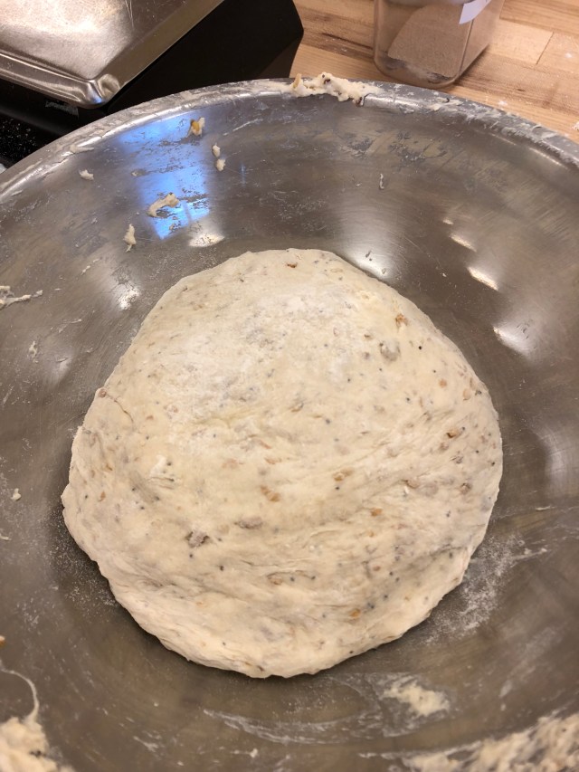 Then we were back to the dough we had made earlier. This dough needs to be folded after about 45 minutes of the first rise or proofing. This helps build strength and also rotates the cooler outside into the middle. There is a lot more time spent in proofing and resting this dough than the other ones we had made.