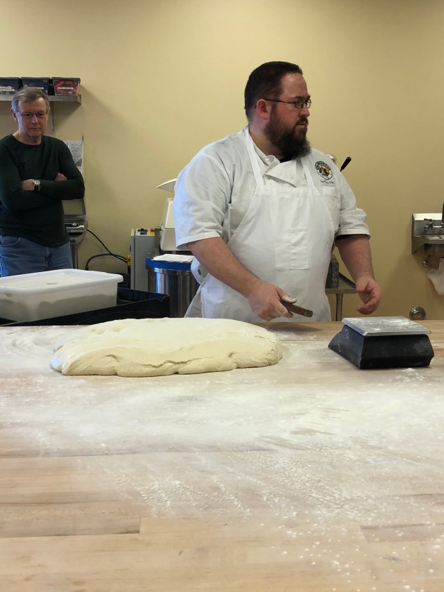 Next we went to the front and Jeff mixed up a batch of the dough using the poolish from the night before and adding more flour, yeast and water. This is called a lean dough as there is no butter or other things added to it.